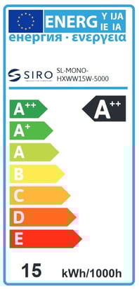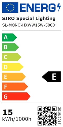 Beim Vergleich dieses Lichtprodukts erkennt man die neue Skalierung der Klassen ebenfalls deutlich. Während unser Produkt SL-MONO-HXWW15W-5000 nach der alten Skalierung in die Klasse A++ fiel, ergibt sich nach der neuen Rechnung ein E.