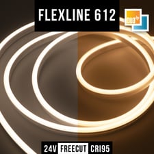 Die Flexline 612 setzt neue Maßstäbe in der Lichtqualität. Ausgestattet mit dem SIRO Diamond Pro Chip bietet sie eine überragende Farbwiedergabe und Helligkeit. Sie ist in 7 Lagerlängen verfügbar, kann aber individuell konfektioniert werden. Mit einem Biegeradius von 6mm bleibt sie dabei so anpassungsfähig wie ihre kleinen Geschwister. Auch für effektvolle RGB-Szenarien die erste Wahl.