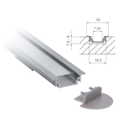 Das Siro IN Profil ist einfräsbar und kann mittels Klipp oder Verklebung schnell und unkompliziert montiert werden. Geignet für LED Bänder mit einer maximalen Breite von 10 mm.