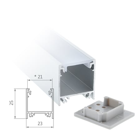Das SIRO AMBI Profil bietet durch das homogene Abdeckprofil eine harmonische lineare Lichtstrahlung. Mit einer Montagefläche von 21 mm bietet es Platz für 2 LED Bänder mit einer Breite von jeweils 8 mm oder 10 mm.